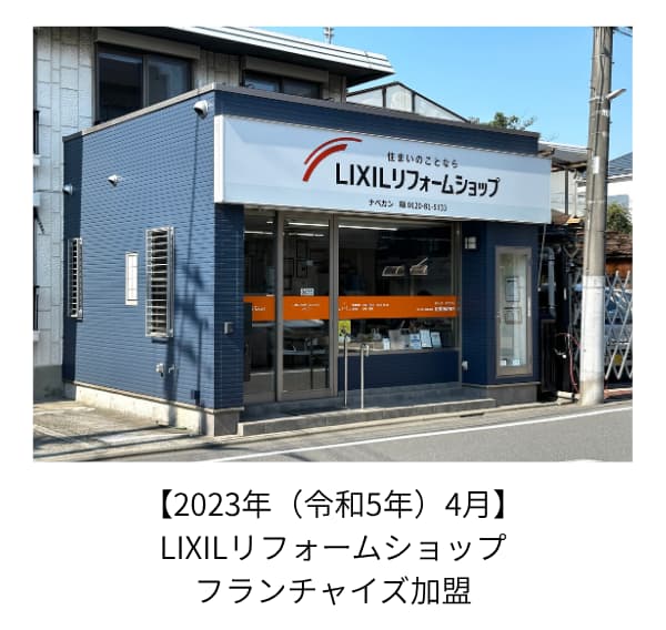 2023年春にLIXILリフォームショップのフランチャイズに加盟しました。このことで、断熱・耐震・高機能リフォームやお客様満足の向上や社内システムの更新を図り効率化向上を行いました。