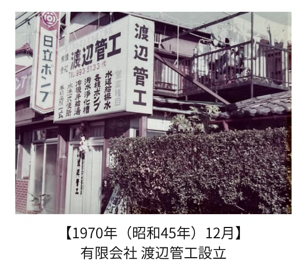【1970年(昭和45年)12月】 資本金130万円にて有限会社 渡辺管工設立
